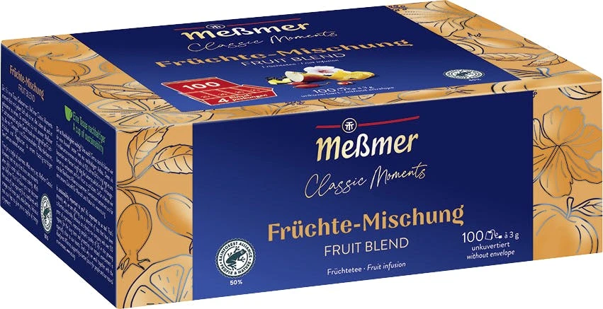 Zeit für eine Tasse Gelassenheit: Meßmer Classic Moments erinnert dich mit jedem Schluck daran, das Leben ab und an gelassener zu sehen. So entdeckst du mit Meßmer Früchteteemischung den Geschmack sonnengereifter Früchte, die mit Orangen- und Zitronenschalen, Holunderbeeren, Hibiskus und Hagebutten zu einem fruchtig-spritzigen Tee-Genuss vereint wurden. Denn als Familienunternehmen mit mehr als 150 Jahren Erfahrung liegt es uns besonders am Herzen, langfristig die Lebensqualität in den Anbaugebieten zu verbessern und die Natur zu schützen. Dafür arbeiten wir mit der Rainforest Alliance zusammen. Gemeinsam setzen wir uns für eine bessere Zukunft für Mensch und Natur ein. Rainforest Alliance Certified.www.ra.org